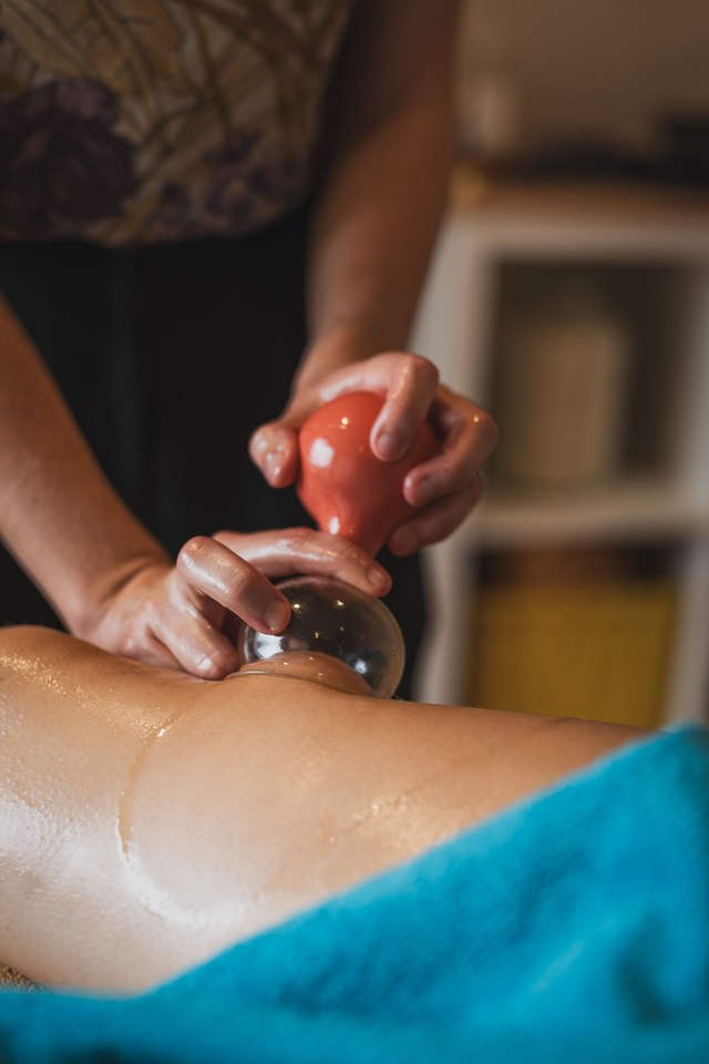 Massage alliant palper/rouler manuel et le massage avec les ventouses. Tonifie, lisse, et perte de cm